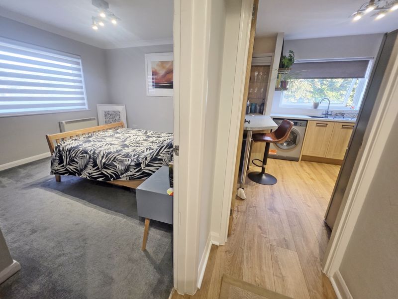Plain coved ceiling with ceiling light point. UPVC double-glazed feature window to side aspect. Night storage heater and TV / media point. Karndean flooring.