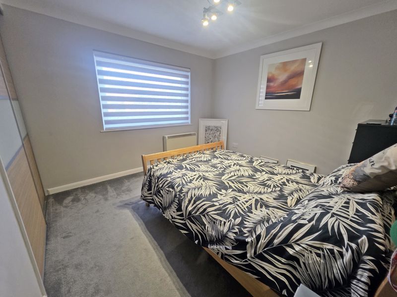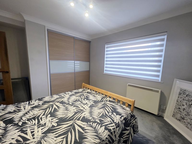 Plain coved ceiling with ceiling light point. UPVC double-glazed window to side aspect. Night storage heater and built-in wardrobe with sliding doors, hanging rail and shelved storage.