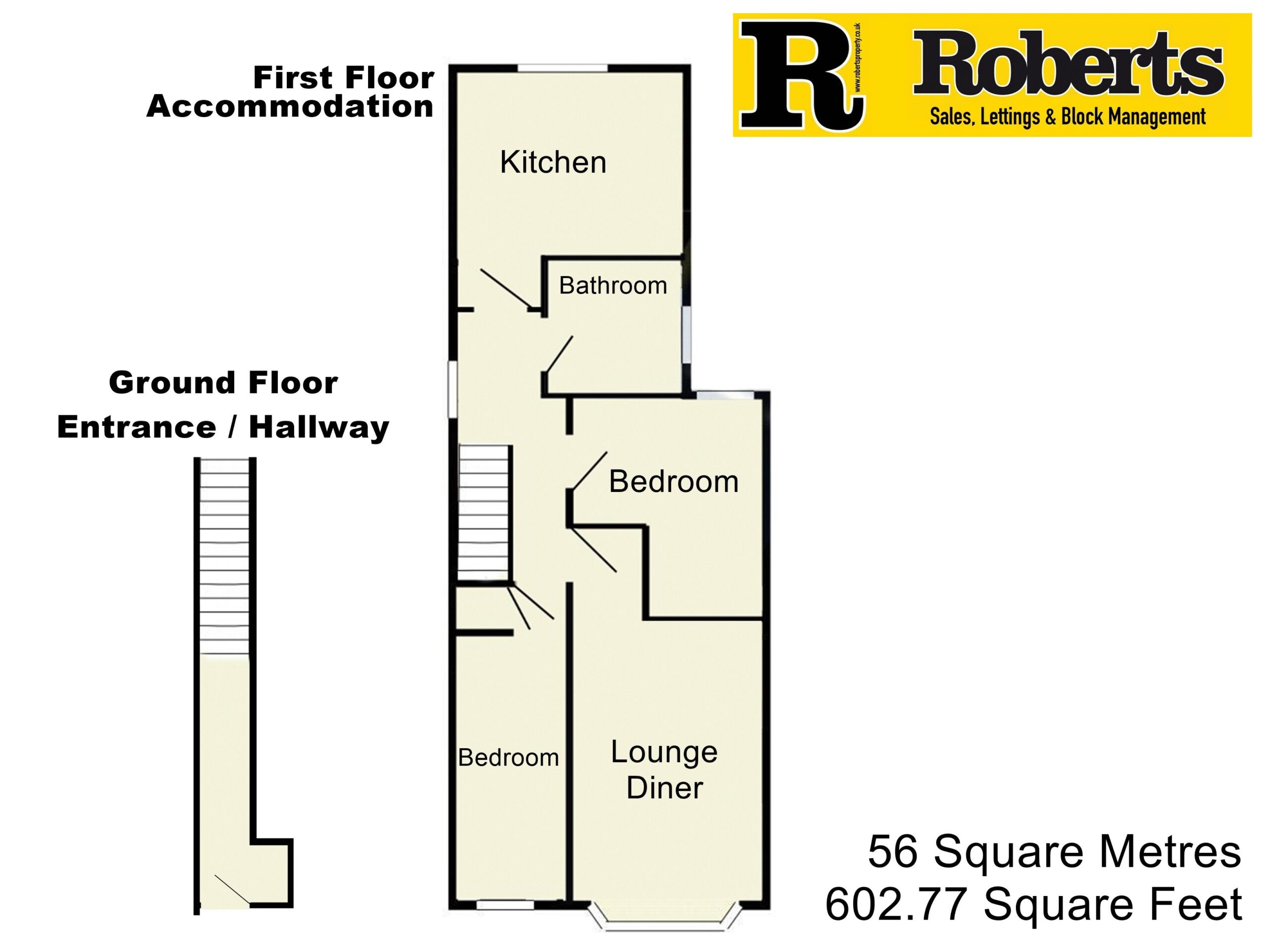 - 56 Sq'M / 602.77 Sq' Ft with Two Bedrooms