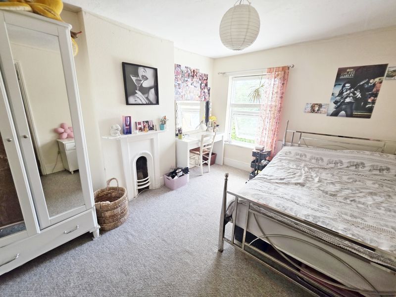 Textured ceiling, ceiling light point and UPVC double-glazed window to rear aspect. Radiator. Cast iron fire surround.