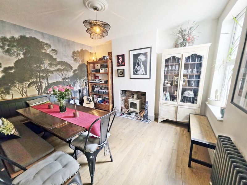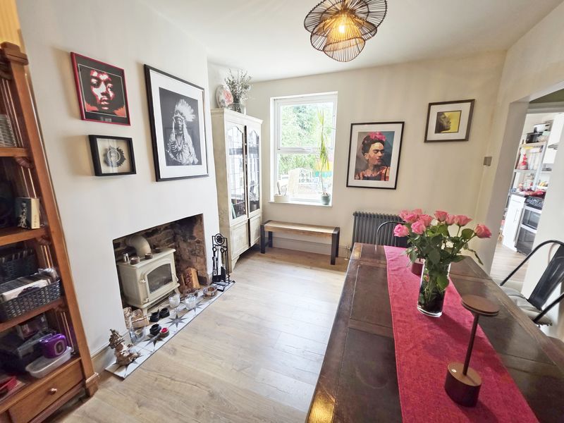 Plain ceiling with plaster centre ceiling rose, ceiling light point. UPVC double-glazed window to rear aspect. Feature fire recess, cast iron radiator and wood laminate flooring.