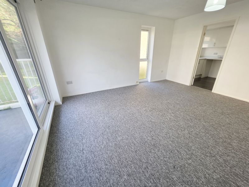 A dual aspect room having textured ceiling with two ceiling light points. UPVC double-glazed full length window to side aspect. UPVC double-glazed sliding patio doors to balcony. Wall mounted electric dimplex heater. TV/media point. Door leads through to: