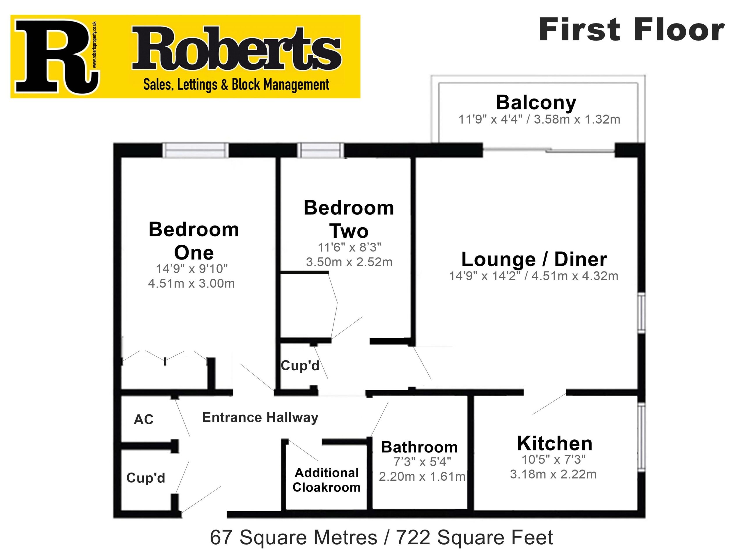 • Two Good-Sized Bedrooms, 67 Square Metres / 722 Square Feet, EPC D-Rated