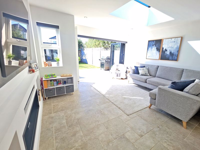 - Feature 32ft Open Plan Living Area with Dual Aspect Focal Windows, Bi-Folds, Orangery Sky Light, Zoned Lighting & Under Floor Heating
