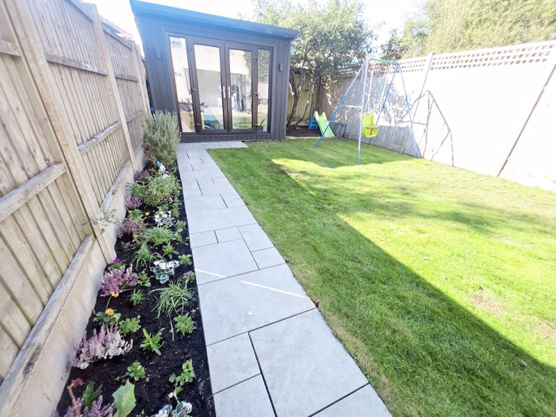 South facing rear garden being well presented, secluded and secure. Italian stone tiled patio and pathway (matching tiles to the living space). Gated side access. Remainder being laid to lawn with flower, plant and cherry tree borders.